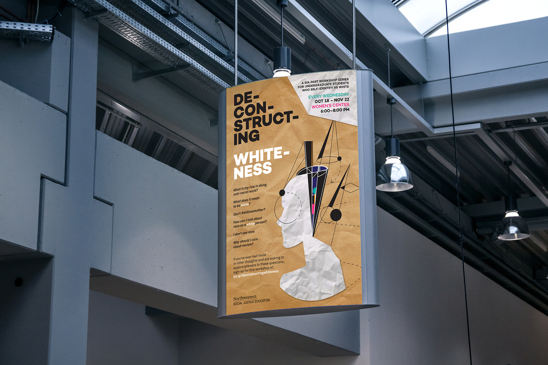 Digital and print promotion for a workshop series hosted by Northwestern University's Social Justice Education department.