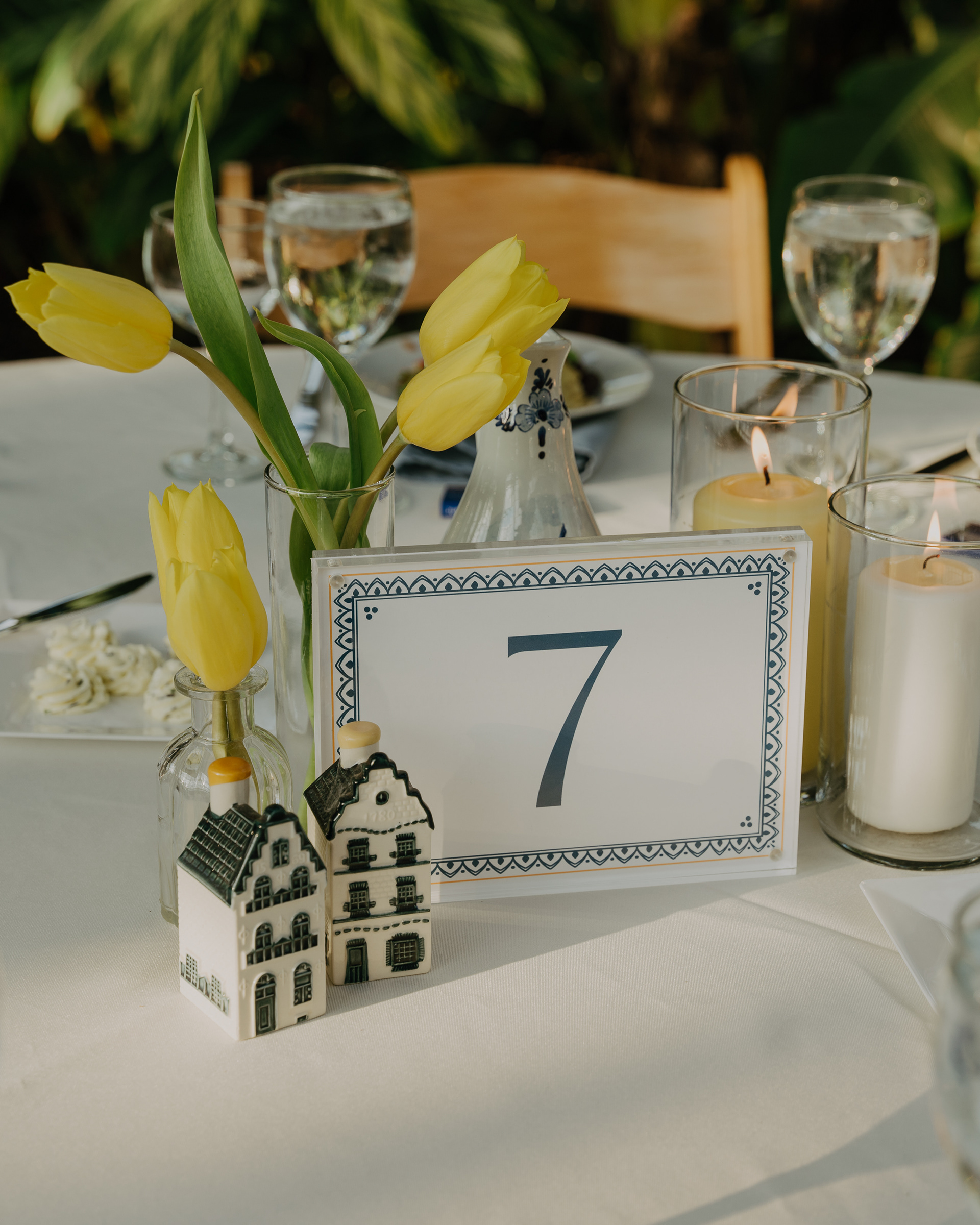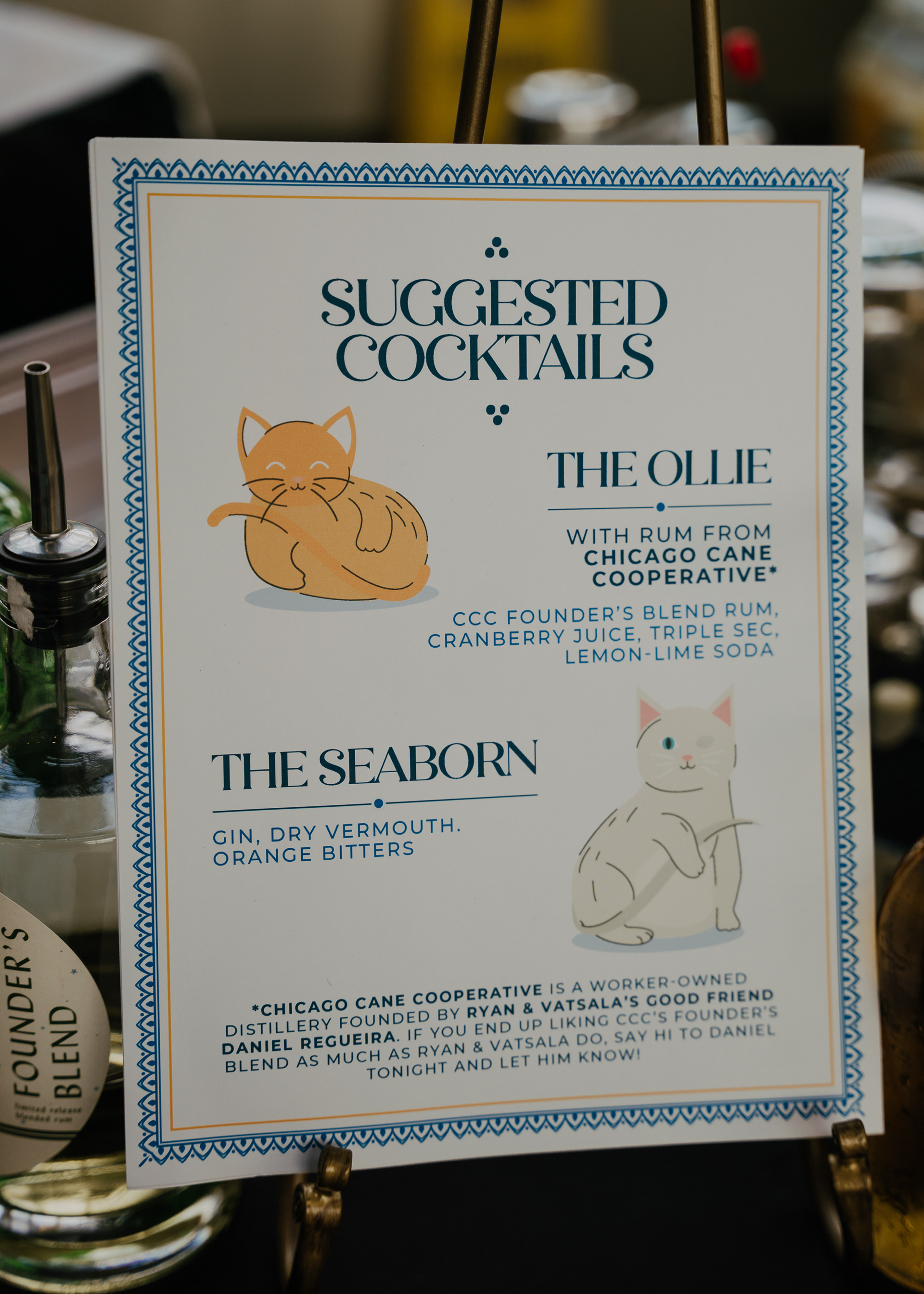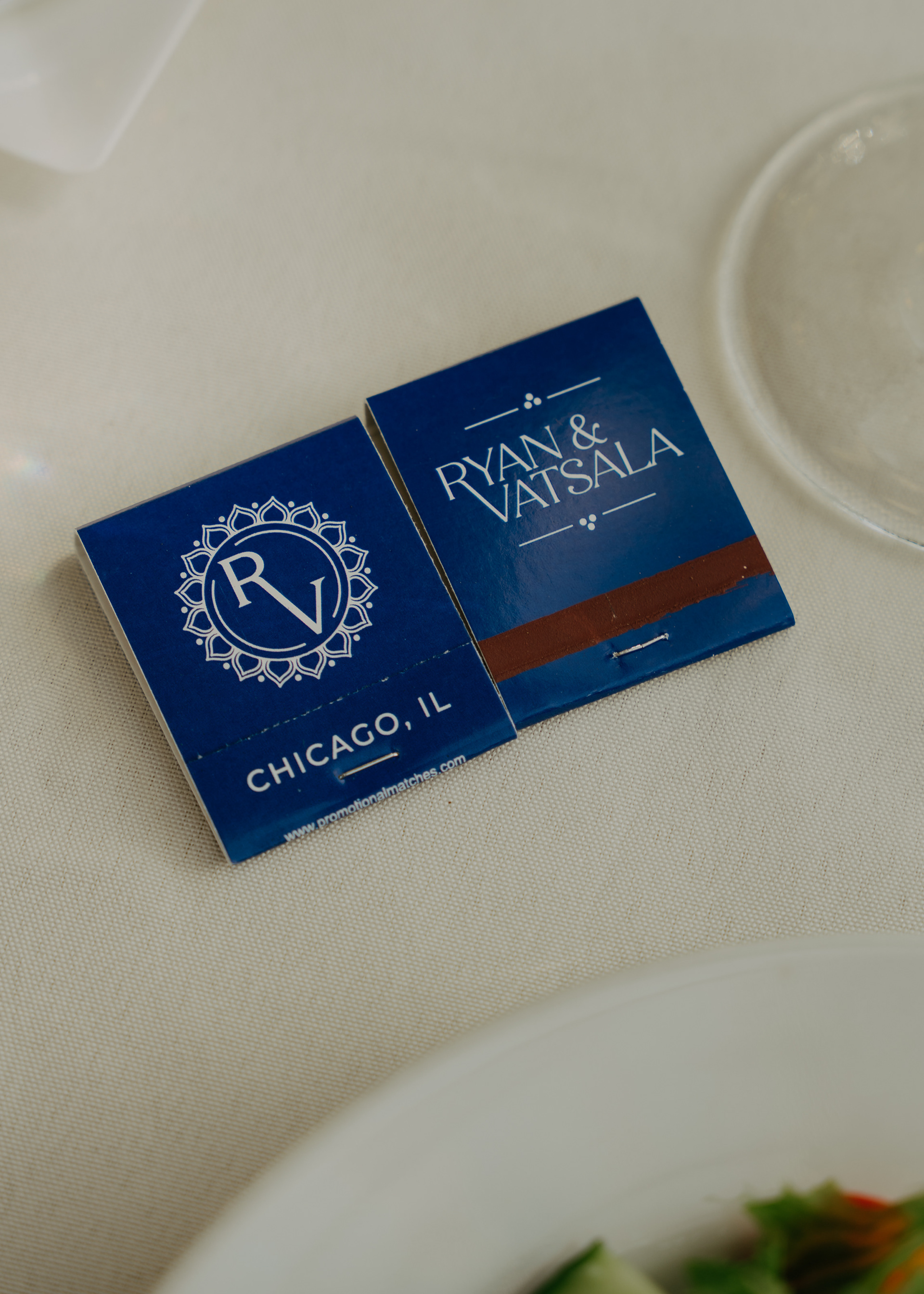 Wedding logo and theme applied to invitations, signage, and more. Pattern and colors envisioned as a fusion of Dutch Delft pottery and Indian mehendi to reflect both brides' heritage. Photos by Alaura Creative.