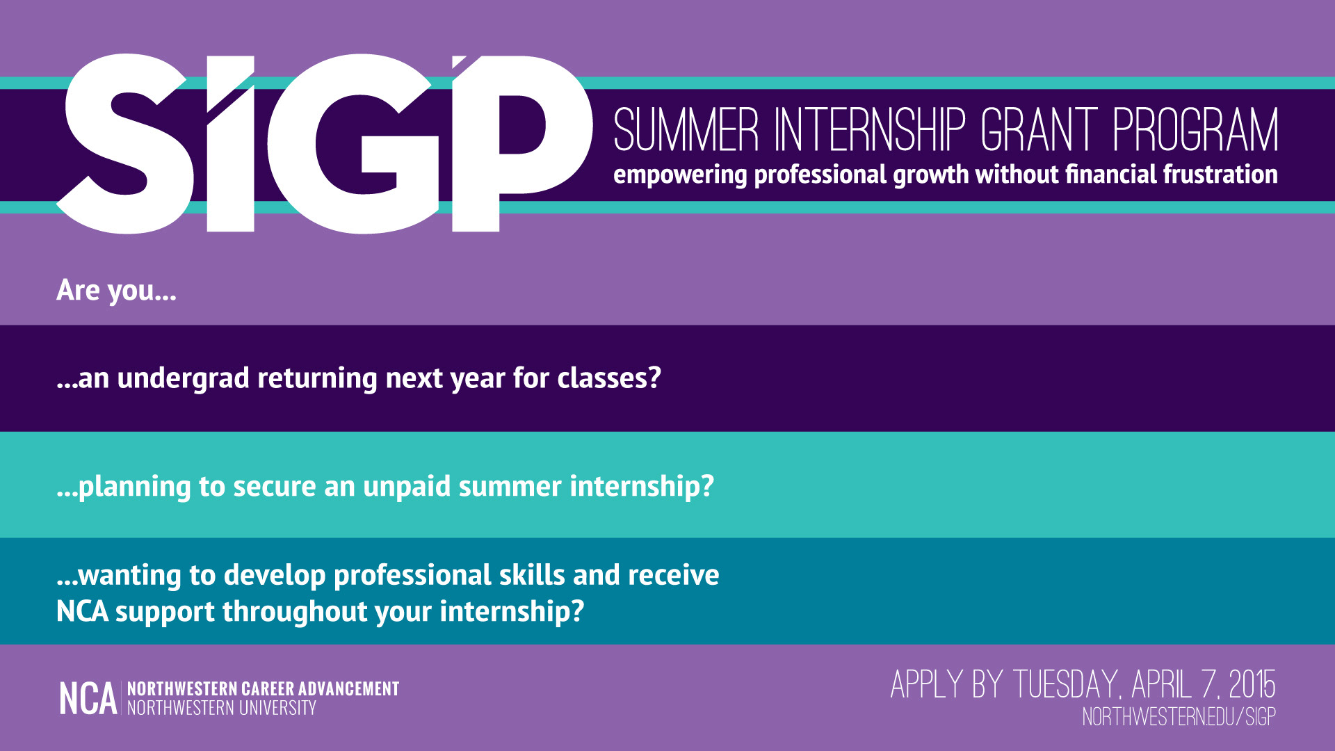 Promotion for Northwestern's Summer Internship Grant Program. 2015