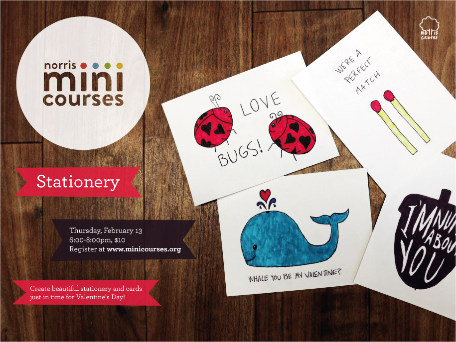 Promotion for an event by Northwestern University's Mini Courses. Work includes illustrations and digital design. 2014