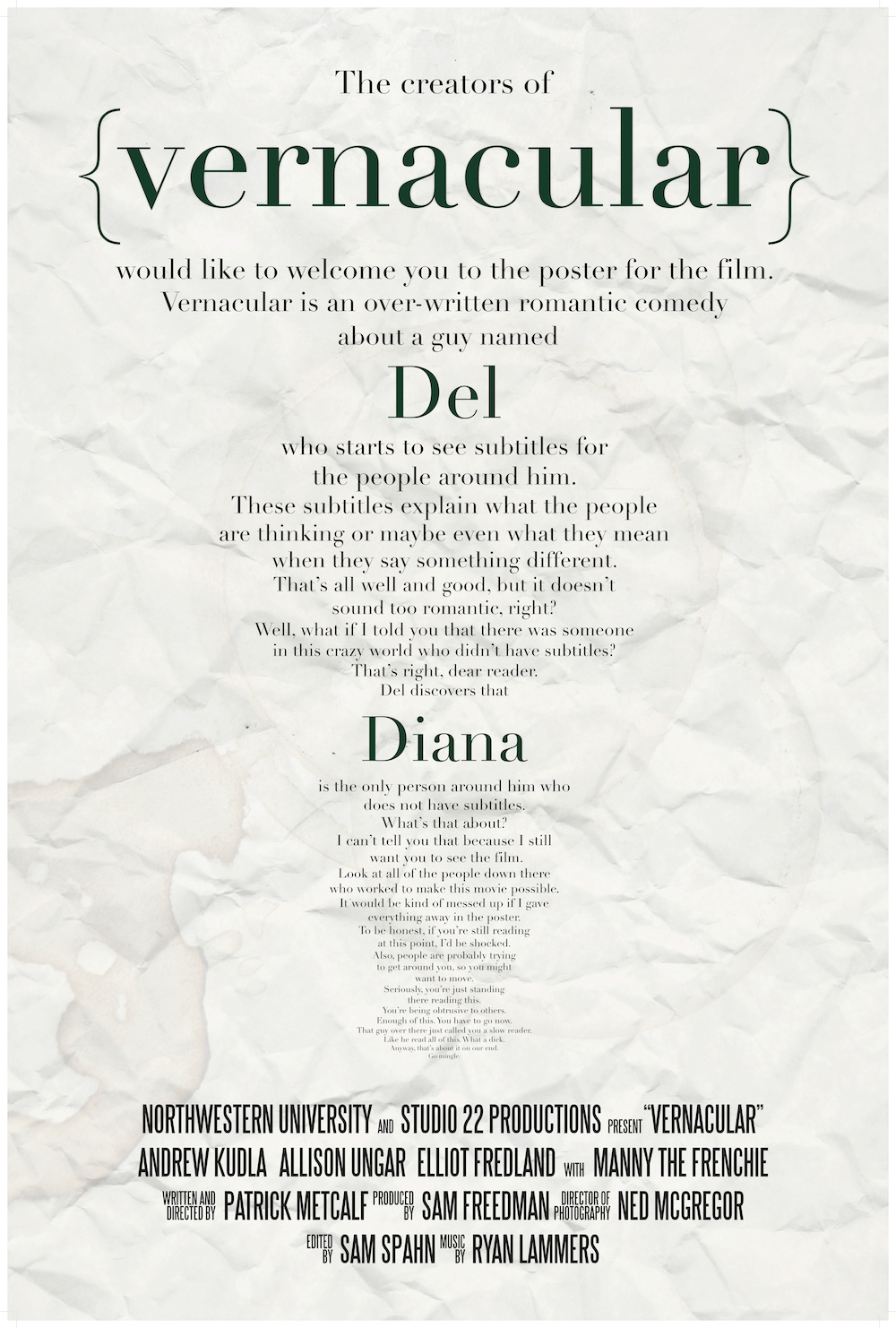Facebook cover photo and poster for the Studio 22 short film Vernacular, written and directed by Patrick Metcalf. 2014